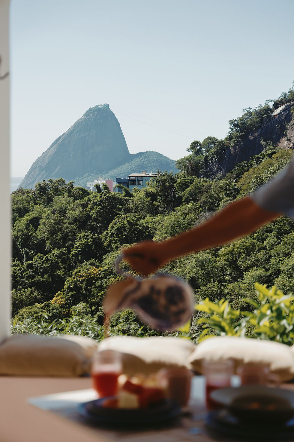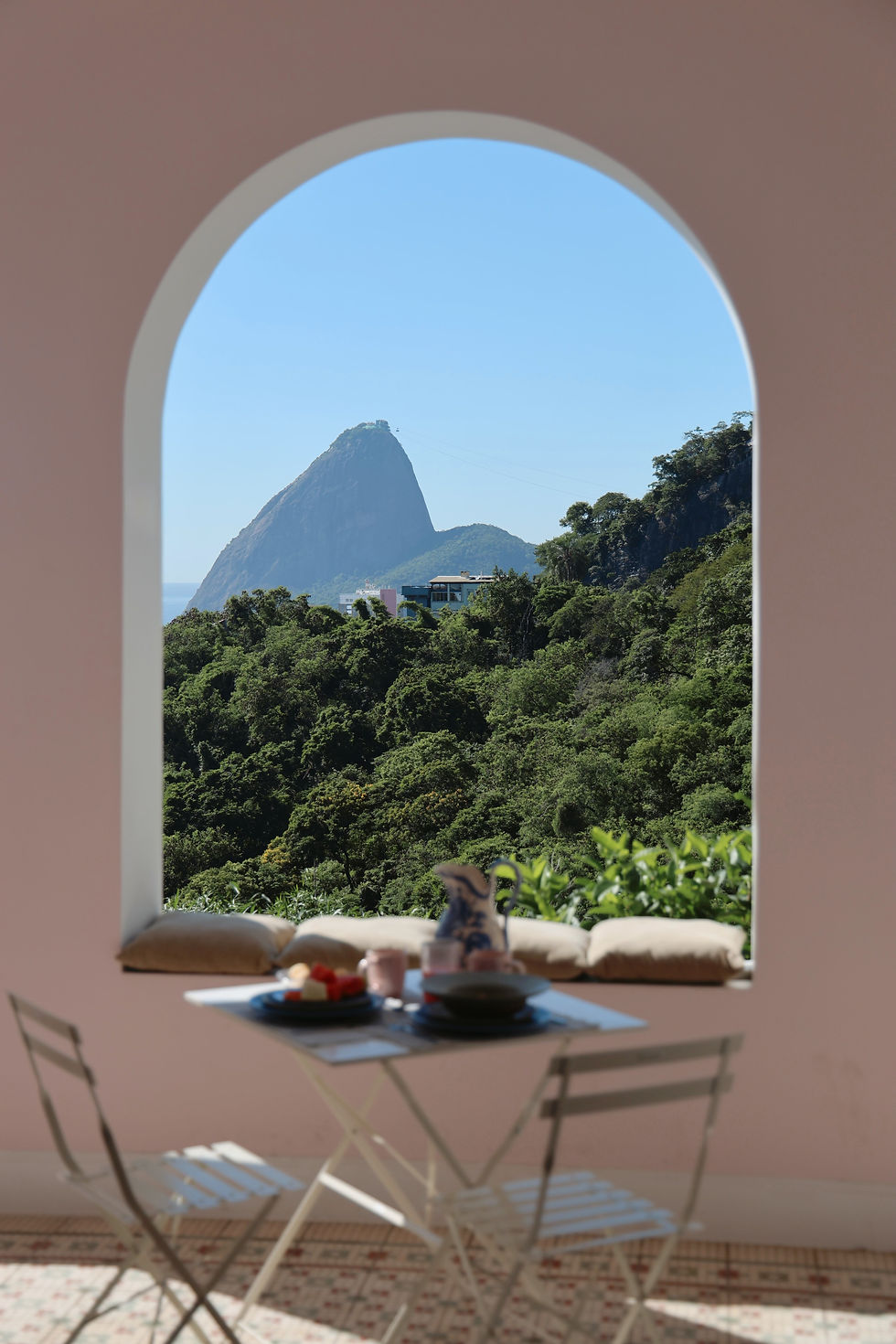 Here, the nature of Rio de Janeiro provides a refuge for reflection and contemplation. It calls us to arrive, from afar, to awaken, anew, without resistance, and to rest within its rhythm.